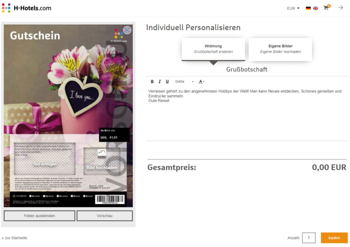- Personalisierungsoptionen: Nutze die Möglichkeit, deinen Kunden den Gutschein mit persönlichen Nachrichten, Bildern oder sogar einem Videogruß zu personalisieren. Dies erhöht die Wahrscheinlichkeit eines Kaufs.
