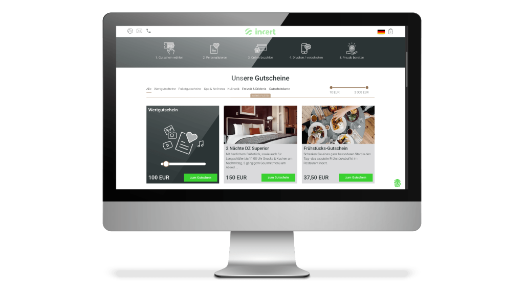 Ein Klick, und du bist mittendrin: Erlebe das incert Demosystem für Gutscheine, Tickets, Produkte und Gästebindung live. Viel Spaß beim Stöbern!